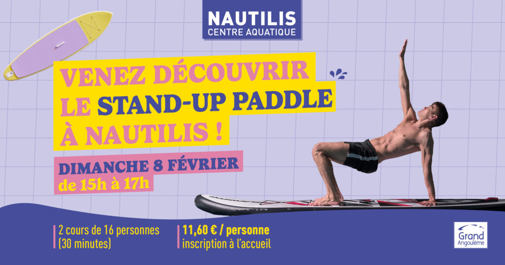 Le dimanche 8 février de 15h à 17h, Nautilis vous propose une activité totalement inédite en Charente : le stand-up paddle en piscine 🏄♀️