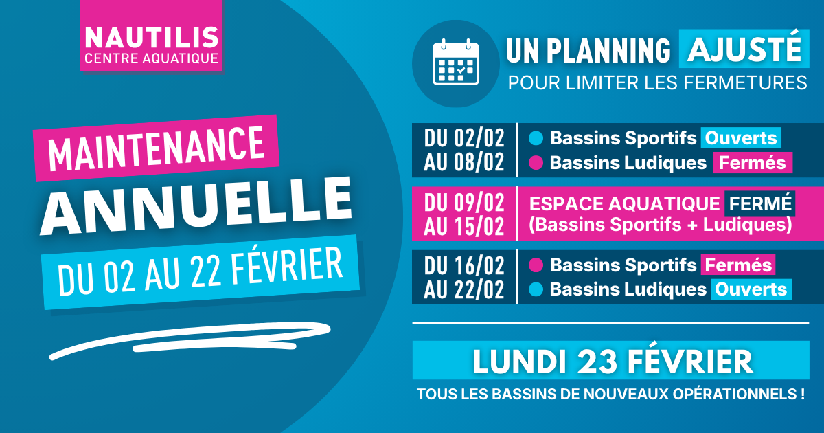 MAINTENANCE ANNUELLE (CENTRE AQUATIQUE) - Du 02 au 22 février