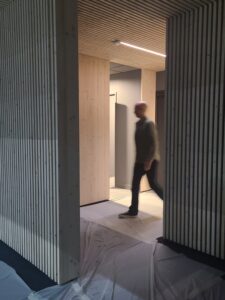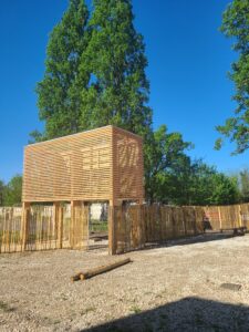 Dès l'entrée, un pavillon en bois marque le nouveau chapitre de La Nef, qui s'ouvre sur un avenir plus écologique et sensible à la nature.