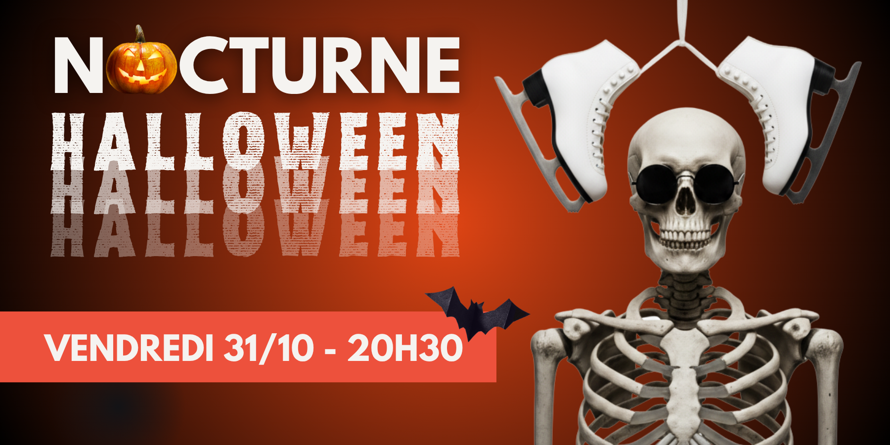 Nous vous invitons vendredi 31 octobre 2025, de 20h30 à 23h à une soirée spéciale pour patiner avec les spectres de la nuit d'Halloween !