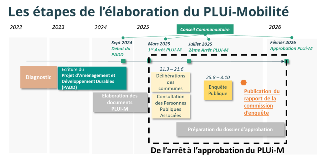 Les principales évolutions apportées seront présentées en Conférence des maires en décembre 2025, puis le Conseil Communautaire de GrandAngoulême délibérera à la majorité des suffrages exprimés sur l’approbation du PLUi-Mobilité le 5 février 2026.